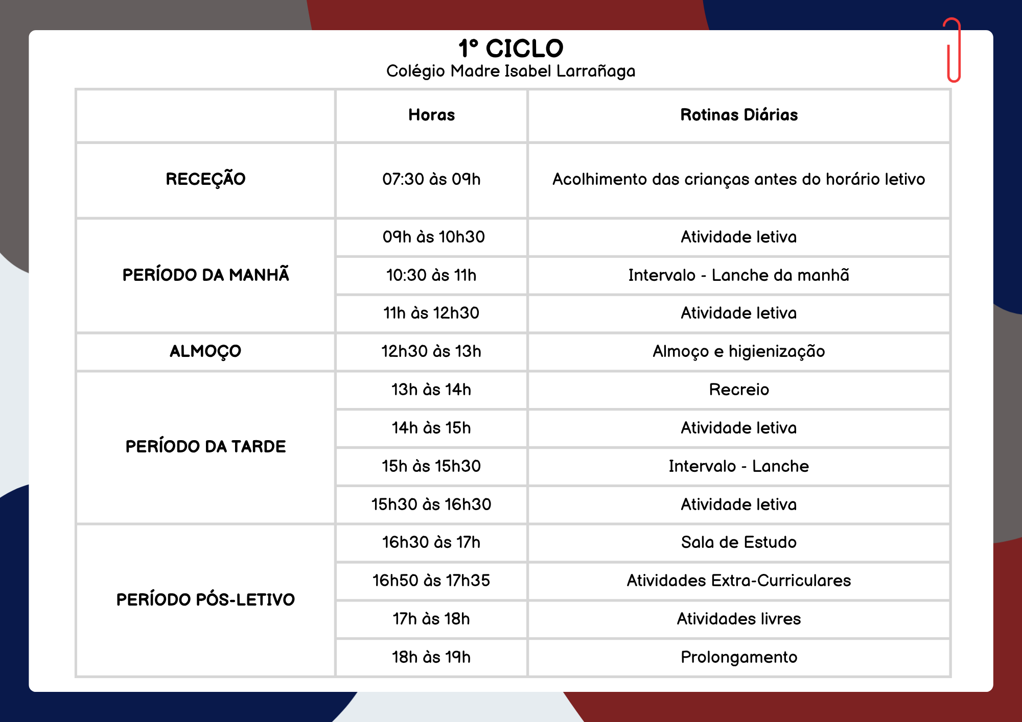 O Colégio MIL dispõe de quatro turmas do Ensino Básico, uma por cada ano de escolaridade. Cada uma das turmas, além do professor titular, conta também com outros professores nas áreas de Inglês, Mundo Digital, Música e Ed. Física.